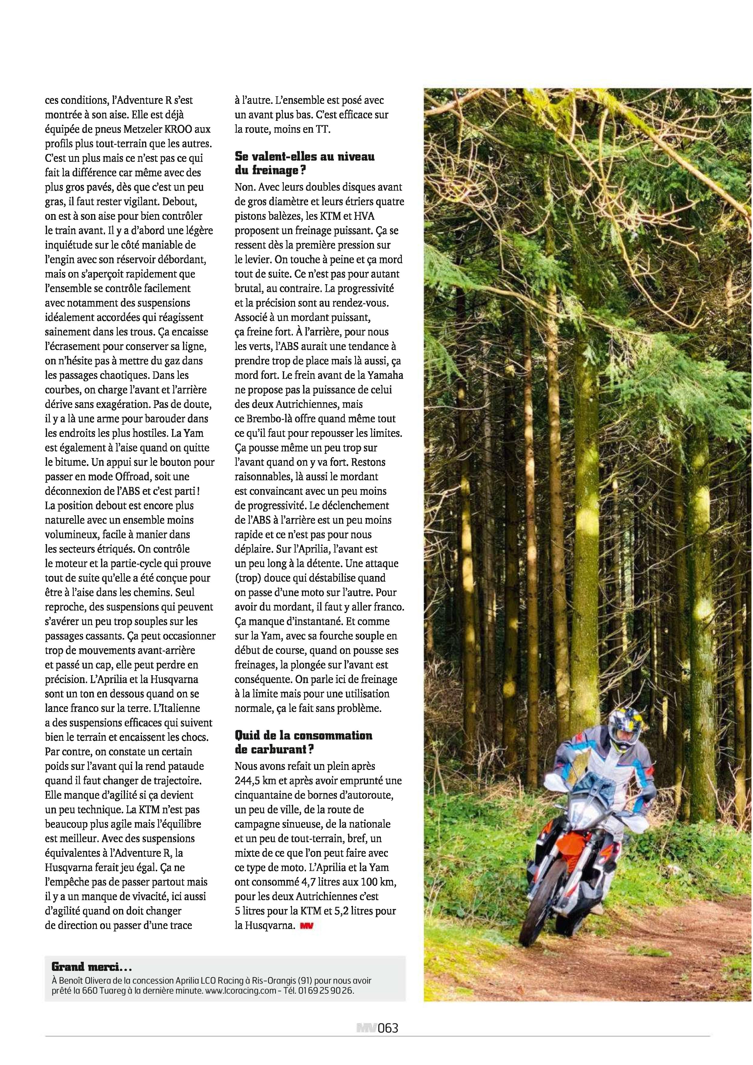 Un comparatif intéressant. Ténéré, Aprilia, KTM et Husqvarna.
